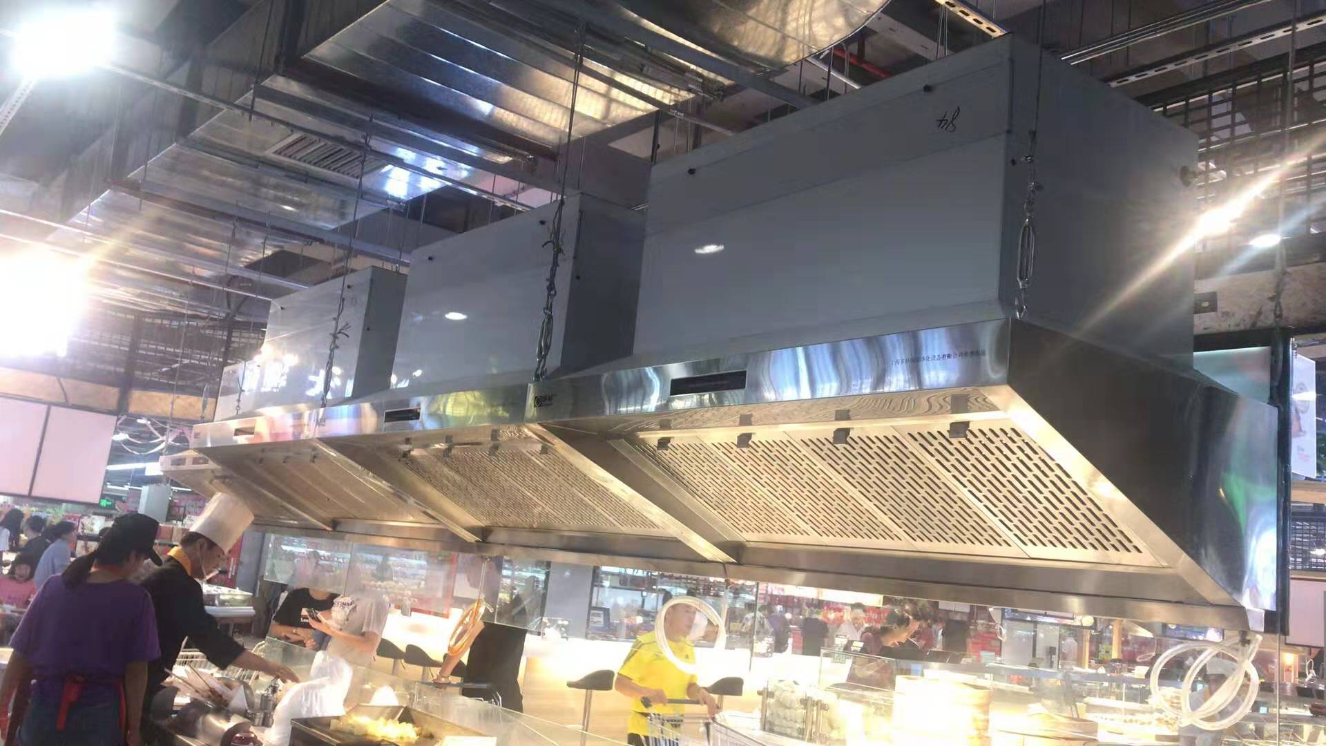 【大型美食廣場應用案例】油煙除味凈化器一體機,不需要連接煙道,節省大量材料成本,無需專人清洗管道,室外“0”排放,室內無污染