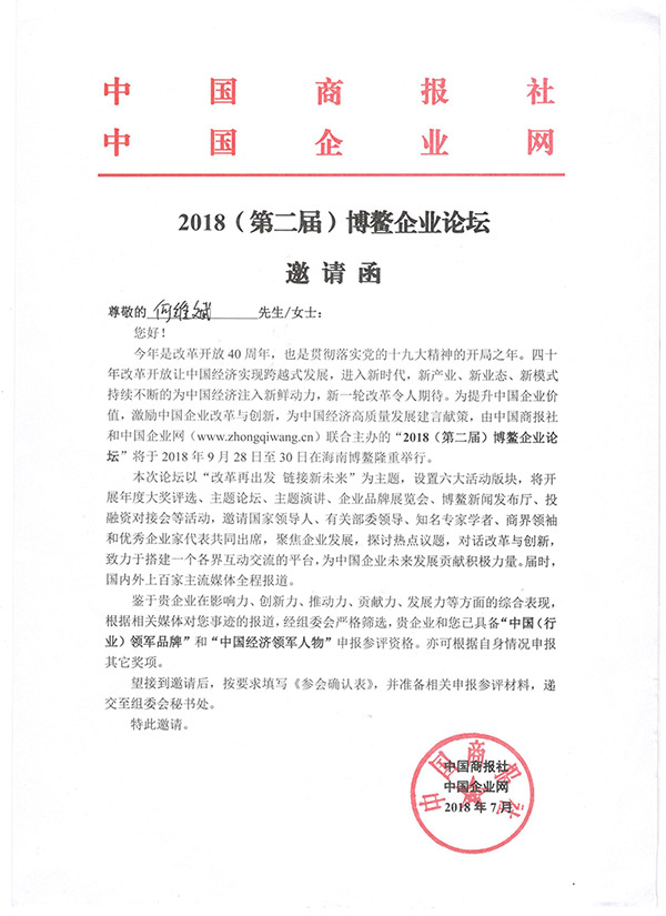 2018年是改革開放四十周年,也是貫徹落實黨的十九大精神的開局之年。四十年改革開放讓中國經濟實現跨越式發展,進入新時代,新產業、新業態、新模式持續不斷的為中國經濟注入新鮮動力,新一輪改革令人期待。本次論壇以“改革再出發、鏈接新未來”為主題,邀請國家領導人、有關部委領導、知名專家學者、商界領袖和優秀企業家代表共同出席,聚焦企業發展,探討熱點議題,對話改革與創新,鑒于油煙凈化器供應商、無煙管內循環油煙凈化一體機生產廠家上海多環油煙凈化設備有限公司在影響力、創新力、推動力、貢獻力、發展力等方面的綜合表現,根據相關媒體對公司法人代表的報道,特邀請何維斌同志參加此次博鰲企業論壇。