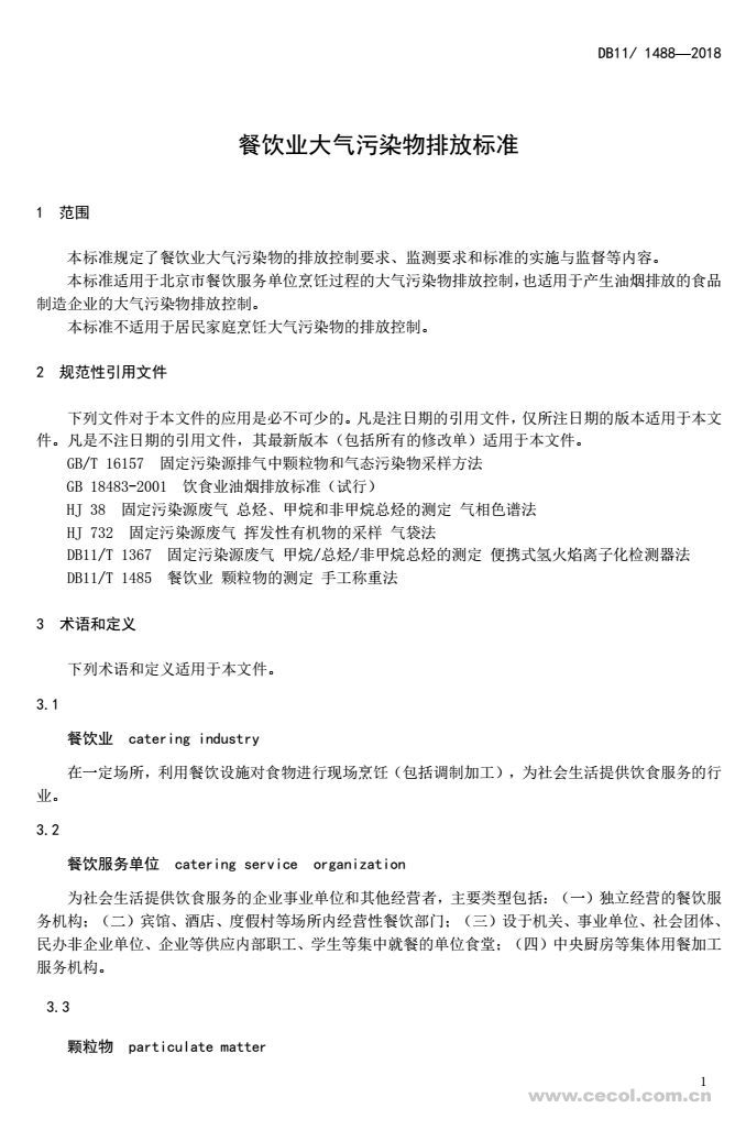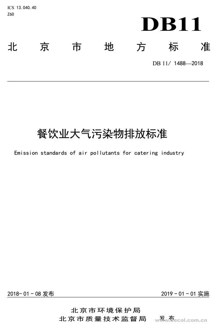 2018年北京市《餐飲業大氣污染物排放標準》(DB 11/1488-2018)